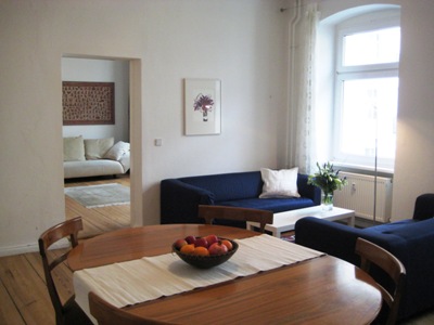 - einen Esstisch ausziehbar mit 6 Plätzen (Hochstuhl für Kleinkinder auf Anfrage)