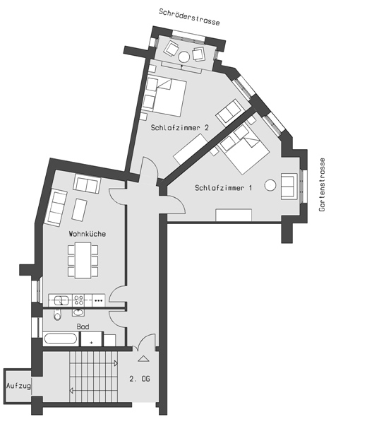 Die großzügig geschnittene Altbauwohnung (100 qm) ist geeignet für eine Belegung mit bis zu 8 Personen.